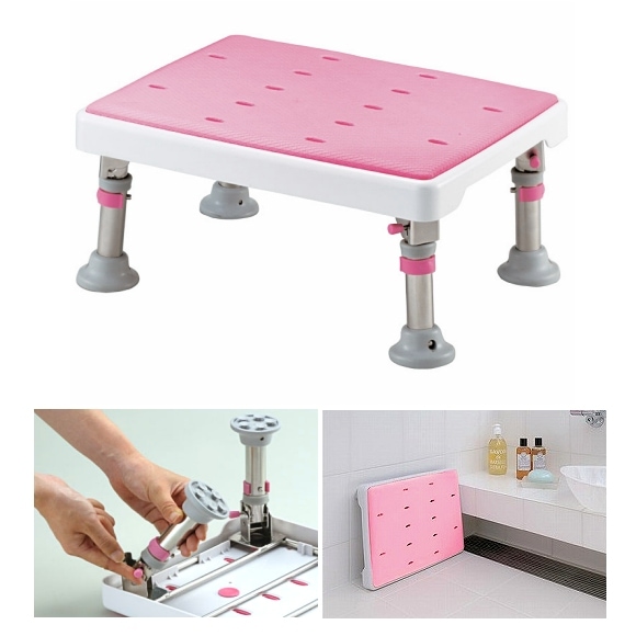 | 使わない時は脚を折りたたんでコンパクトに収納できるやわらか天板タイプの浴そう台。自重で沈み、横滑りしにくいゴム脚とミニ吸盤で浴槽内で安定します。 |